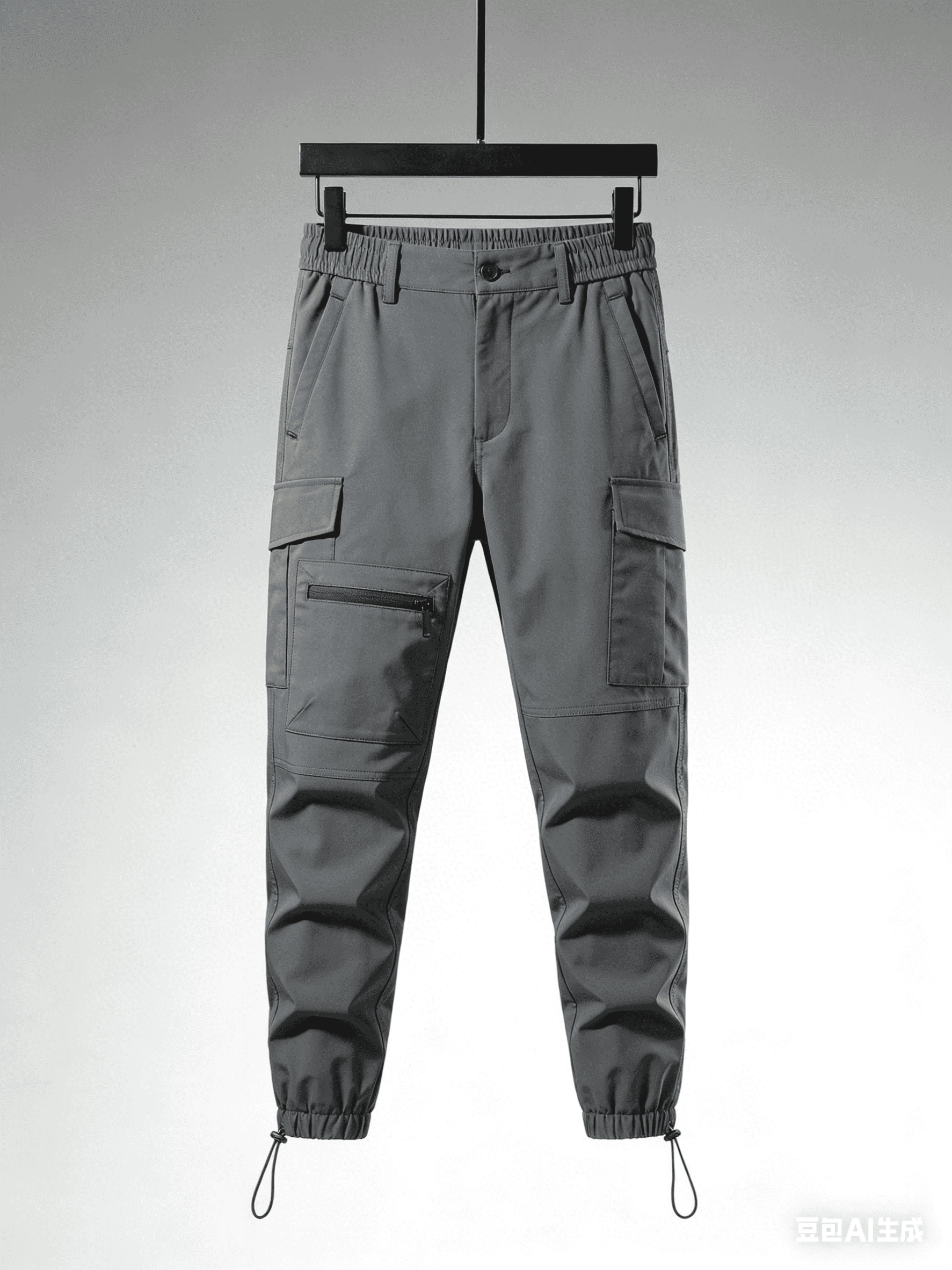 未来主义机能风工装裤,多口袋+弹性面料,兼顾街头感与实穿性。